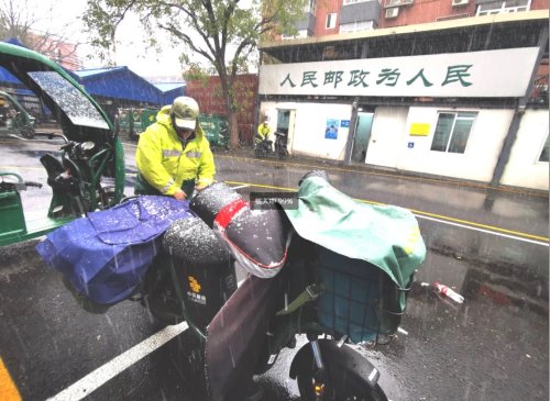 初冬的雪花落在地上瞬间融化,造成了道路湿滑,伴随着气温下降,给邮政外勤工作带来了一定影响。朝阳邮政水碓子支局的投递员徐萍又使上了她的“绝招”——把信件和报纸揣进怀里,顶着一头的雪花,三步并作两步,快速地跑进居民楼。