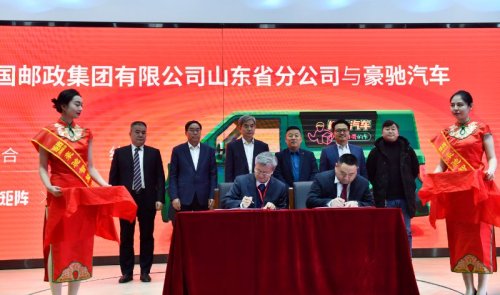 12月12日,中国邮政集团有限公司山东省分公司与山东豪驰智能汽车有限公司在济南举行战略合作签约仪式。