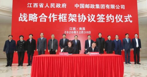 12月30日,中国邮政集团有限公司与江西省人民政府在南昌签署战略合作框架协议。江西省委副书记、省长易炼红会见中国邮政集团有限公司党组书记、董事长刘爱力一行,并共同出席签约仪式。江西省委常委、副省长吴忠琼与中国邮政集团有限公司副总经理温少祺分别代表双方签约。当天,吴忠琼、刘爱力、温少祺等出席昌北机场空侧南昌邮件处理中心工程开工仪式。双方相关部门负责同志参加有关活动。