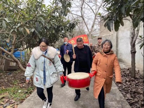敲锣打鼓扯横幅