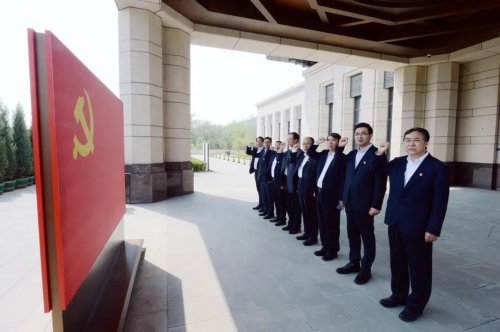 “我志愿加入中国共产党,拥护党的纲领,遵守党的章程,履行党员义务,执行党的决定……”在纪念馆二层的“四梁八柱”敞轩,集团公司党组全体同志在党旗前庄严宣誓,重温入党誓词,重忆入党初心,坚定为党和人民奋斗终身的理想信念。