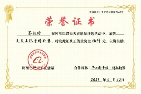 5月12日下午,阿里巴巴天天正能量联合华西都市报、封面新闻,为蹇艳玲颁发正能量特别奖及5000元奖金,感谢她制止了一场悲剧,也把一个家庭的命运改写。