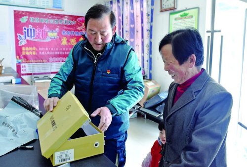 赵满明将代买的生活用品送到殷家城乡寺山村村民白有君手中