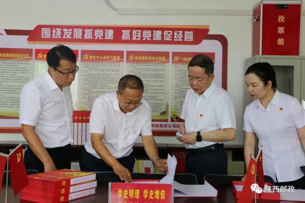 调研期间,高军一行先后深入延安市分公司邮件处理中心、宝塔区桥沟揽投部、新区政务大厅邮政便民服务窗口、行知北路营业所、枣园主题邮局、新区揽投部,以及洛川县分公司槐柏营业所、石泉普服代办点、中邮农品陕西洛川苹果基地、中心街邮政营业所及邮件处理中心实地调研,并前往杨家岭革命旧址等地现场开展党史学习教育,带领党员干部集体重温入党誓词。