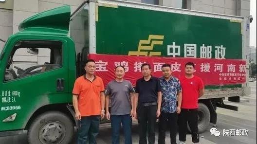 7月24日18时20分,两辆满载着宝鸡擀面皮、臊子面、锅盔、矿泉水等1000余件捐赠物资的邮政车辆,从宝鸡出发驰援河南新乡,帮助当地群众渡过难关。