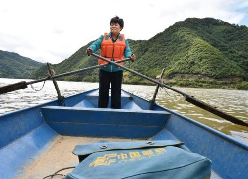 投递路上,赵明翠划船横渡汉江