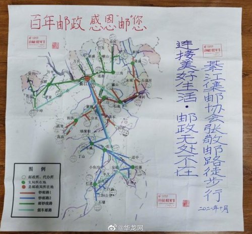 52岁的张敬,是重庆一名集邮爱好者。2021年冬天,他耗时一个多月,徒步走完重庆綦江近2000里的邮路,并“打卡”当地51个邮政所和主题邮局。1月13日,张敬接受记者采访时称,他崇拜“马班邮路”上的王顺友,也想亲身体验一把乡村邮递员的辛苦。2021年10月28日至12月26日,他开启“环綦邮路”徒步行。一个背包、一袋干粮、一瓶矿泉水,他背着行囊平均每天徒步二三十公里。