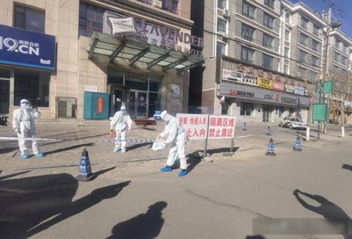 14时36分,邮车到达隔离点——镇赉县薰衣草宾馆。投递人员下车后第四次对药物邮件进行消毒,最终将药物送到集中隔离点工作人员处,由他们转交到孩子手中。