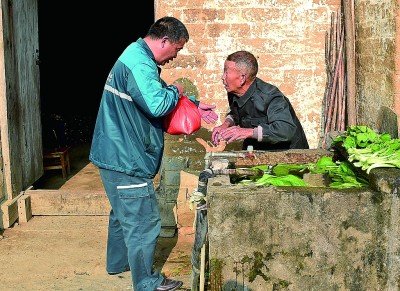 在安徽太湖县北中镇桐山村,邮递员吴义阳将代购的糯米送到老人手中。 新华社发