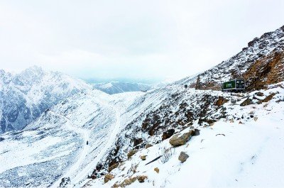 邮车行驶在四川甘孜州雪线邮路上。 新华社发