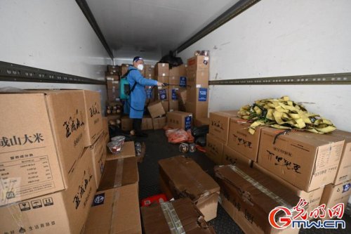 据悉,目前,奉贤邮政部门参与全区保供物资最后 10 公里和最后 1 公里的配送,原本投入快件投递的车辆和人员全部用于保供物资的转运中,确保当日物资当日送达。(沈春琛摄 / 光明图片 / 视觉中国)