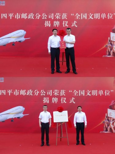 6月22、23日上午,市委宣传部、伊通县委宣传部领导分别为新晋全国文明单位中国邮政集团有限公司四平市分公司、中国联合网络通信有限公司四平市分公司、四平市公安局出入境管理局、四平市传染病医院、铁西区站前街新铁社区、四平君乐宝乳业有限公司、国家税务总局伊通县税务局颁发荣誉证书、揭牌。