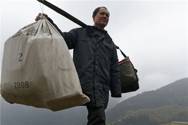 中国邮政集团公司贵州省锦屏县分公司启蒙支局的乡邮员张林昌曾是一名老兵,他1983年入伍,1987年退役,退役后,他主动申请到锦屏县最难走的邮路送信送报,一干就是32年。