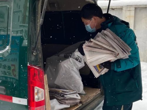 2月15日,农历大年初四,雪花仍在不停的飞舞,早上八点半,寄递事业部早已满是忙碌的身影,似乎替代了过年的喧嚣感。王明杰也与往日一样在分拣场地分拣包裹、装车,忙碌的身影一直没有停歇。他说:“由于是过年期间,快递包裹相对于平日来说稍少一些,以往日均150件左右,有时还需要两次往返。”