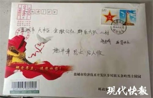 现代快报记者了解到,多年来,守墓人卞康全执着守护"烈士家园",竭力寻找烈士亲人。自2018年开始,卞康全根据整理的地址寄送寻亲信。2019年盐城市邮政分公司在五条岭开展党建联盟活动时,了解到守墓人卞康全的情况,感动之余决定为他免费提供信封、免费投递。