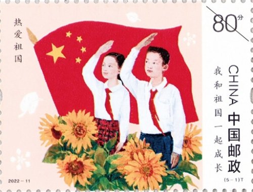 6月1日,《我和祖国一起成长》特种邮票发行。该邮票一套5枚,邮票图案名称分别为《热爱祖国》《刻苦学习》《崇尚科学》《强健体魄》《尊重劳动》。