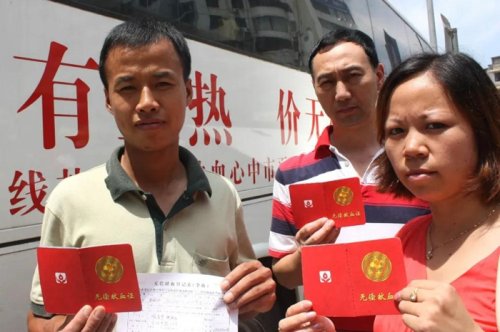 王国华(左一)参加义务献血志愿活动
