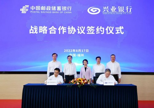 8月17日,中国邮政储蓄银行与兴业银行在福建省福州市签署全面战略合作协议。福建省委常委、常务副省长郭宁宁,中国邮政集团有限公司党组书记、董事长刘爱力出席并共同见证签约;邮储银行行长刘建军,兴业银行董事长吕家进致辞;兴业银行行长陶以平主持签约仪式;邮储银行副行长徐学明、兴业银行党委委员张霆代表双方签署全面战略合作协议。