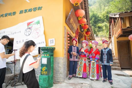 独栋的房子,墙面装饰着一个大信封,边上写着“先吃黄连苦 再享蜂蜜甜”的标语,这里即是游客们都爱拍照打卡的初心邮局。作为小院里的一抹独特风景,初心邮局也成为当地研学线路的重要教学点。