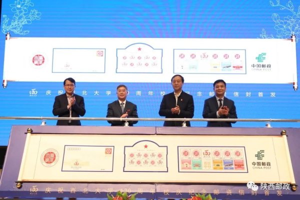 10月15日,由西北大学与中国邮政集团有限公司陕西省分公司联合推出的120周年校庆纪念邮折正式发行。西北大学党委书记王亚杰,校长郭立宏,党委副书记张清,陕西省邮政分公司党委委员、副总经理强国茂出席仪式。西北大学党委常委、副校长、校庆工作总指挥常江主持仪式,陕西省邮政分公司文化传媒部、西安市分公司相关领导参加仪式。