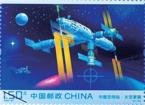 该套邮票4枚图稿表现的内容分别为“天地往返”“空间科学”“出舱活动”“太空家园”。“天地往返”画面以腾飞的长征五号B运载火箭为前景,背景展现了中国空间站建造过程中发射载人飞船、货运飞船、核心舱等舱段使用的三型火箭,以及测控船、测控雷达、测控卫星返回舱等丰富内容。“空间科学”画面以图标形式展现了空间生命科学、微重力燃烧科学、微重力流体科学、空间天文与天体物理等不同的空间科学实验类型。“出舱活动”画面描绘了两位中国航天员进入太空开展出舱活动,分别在机械臂上和舱壁上执行舱外作业任务的场景。“太空家园”画面以环绕地球的中国空间站为主体,体现出建设航天强国、营造太空家园、探索未知宇宙的寓意,寄托着和平利用宇宙空间、开放共享造福人类的美好愿望。邮票采用多色胶印结合专色油墨、冷烫、全真彩等多种印刷技术,将其艺术之美以及科技感、氛围感、趣味性于方寸间细微处精妙呈现。