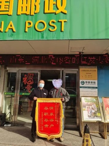 近日,驻马店市平舆县万金店邮政营业所收到客户的一面锦旗,上写着“情系客户 尽职尽责”,客户激动地拉着理财经理的手说:“感谢咱们邮政,感谢中邮保险啊。”