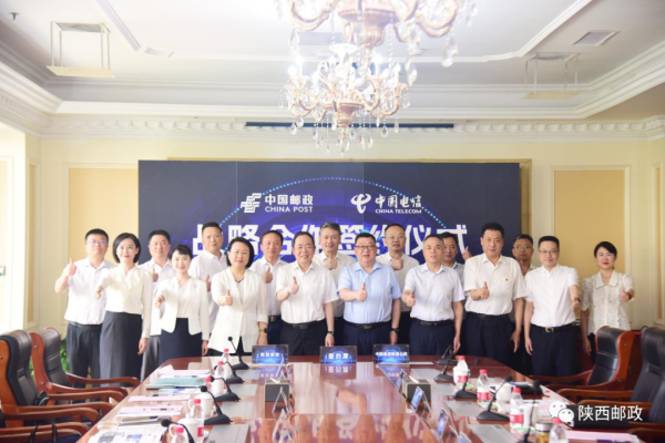 8月31日,中国邮政集团有限公司陕西省分公司与中国电信股份有限公司陕西分公司签署战略合作协议。中国邮政集团有限公司陕西省分公司党委书记、总经理高军,党委委员、副总经理刘磊和中国电信股份有限公司陕西分公司党委书记、总经理上官亚非,总经理助理辛公良一行座谈并见证签约。刘磊、辛公良分别代表双方签署协议。双方相关部门领导参加仪式。