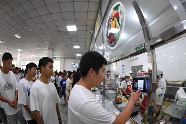 学生在食堂“刷脸”打饭