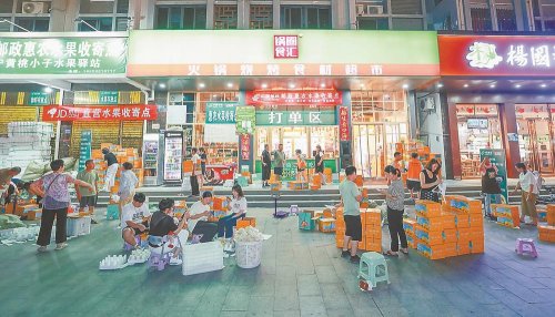 以往水果外销主要依靠收购商外运,今年新圩村有了客货邮便民服务点,不仅可以实现在村里直接发货,而且在里心镇综合运输服务站成立快递分拨中心,打包分拨一条龙,大大提升了水果生鲜外运的效率。谢接福笑着说:“每天都有200多个快递包裹从我的小店发出,水果季我就增收1.8万元。”