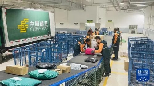 4时许,记者驱车前往兰州新区西部药谷的中国邮政集团有限公司甘肃省分公司邮件处理中心。抵达时,门口停满车辆,有的在卸货,有的在装车。初冬寒意甚浓,但门内十分火热,传送带吱吱作响,包裹加速传递。