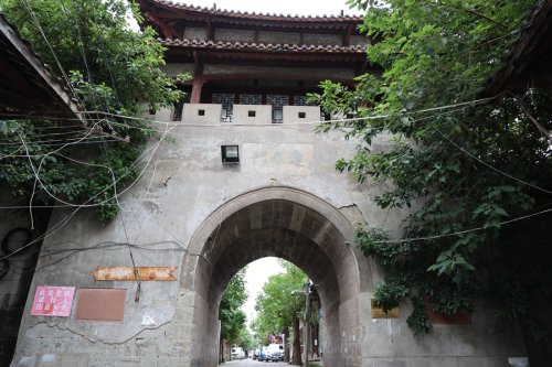 沿大东街步行至小东街,来到位于古资洲四大城门之一的建春门。老街尽头,高墙矗立,城门洞开。行人三三两两从城门经过。远观,城墙墙体由两尺见方的大石堆砌而成,高三四米,呈弧形,往沱江北侧延伸;近看,城门洞乃巨型条石以传统方法拱立,墙面黝黑,布满深深“皱纹”。“建春门外附近便是珠江驿所在地。”据资中县邮政分公司综合办副主任邱浪介绍,57岁的邱浪是土生土长的资中人,他说,这条古时老街,承载着当年联通成渝两个城市的重任,为当时的地方经济发展起到了关键作用。