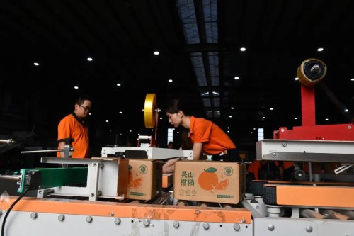 “在我们这条20多米的分拣线上,可以根据客户要求设置果径、重量等参数,精准筛选每一枚水果,大大提高了分拣效率。”三科农业副总经理刘翔介绍说。场地另一侧,刚刚分拣好的水果被放上皮带传送机,邮政工作人员随即将其装车发往全国各地。