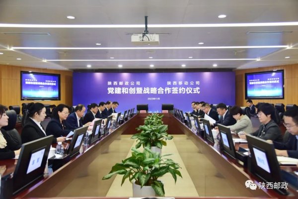 11月27日,陕西邮政与陕西移动举行了党建和创暨战略合作协议签约仪式。省分公司党委书记、总经理高军,党委委员、副总经理刘伟、刘磊,陕西移动公司党委书记、董事长、总经理周敏,党委委员、副总经理周艳丽、莫文弘及双方相关部室负责人出席此次签约仪式。