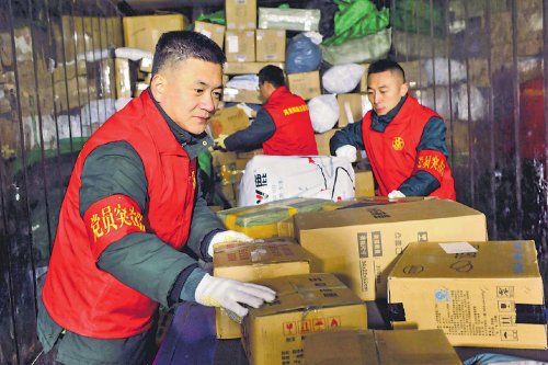 2月4日,为应对暴雪冰冻天气,湖北省天门市邮政分公司机关全体党员干部积极响应号召,深入一线,与员工一起,连夜紧急疏运2万件邮件,有效缓解了邮件处理中心压力,保障了邮运畅通和市民用邮需求。□刘志洪 摄影报道
