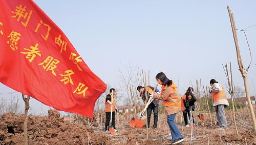 在全国第46个义务植树节前夕,湖北省荆门市邮政分公司组织党员、团员青年赴定点帮扶村——沙洋县五里铺镇金台村开展义务植树活动。在堰塘堤坝植树点,大家分工协作,共种植紫薇200棵,为美丽乡村建设孕育了新的生机。