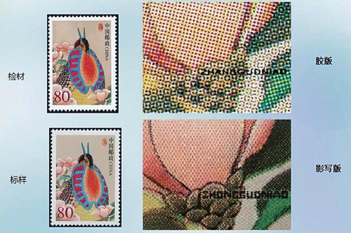 印刷版别是邮票真伪鉴别最本质最重要的鉴别特征,所以要识别假邮票就需要掌握不同版别的印刷特点。而且,邮票印刷厂的印制设备也是仿印假票的小作坊所无法比拟的,仿印的假票无法达到与真邮票在印刷制版上完全相同,通过印刷版别的比对可以辨别检材的真伪。