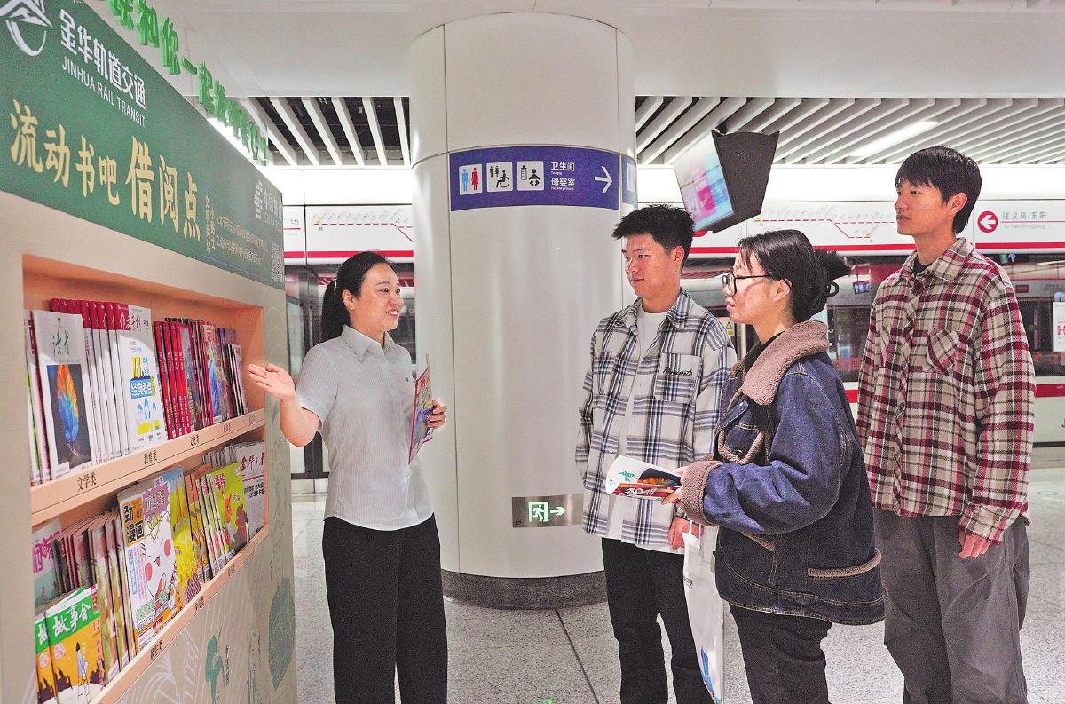 日前,浙江金华邮政与市轨道交通集团启用“流动书吧”,为建设“书香金华”又添一惠民实举。金华邮政为“流动书吧”免费提供近2000本杂志,乘客可在进站乘车时顺手借一本,出站时归还至固定还书点即可,契合当今人们碎片化的阅读习惯,受到乘客的欢迎。