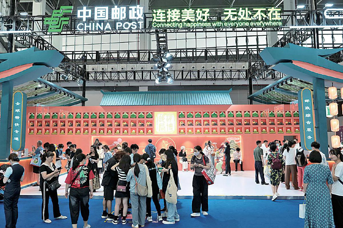 4月13日,第四届中国国际消费品博览会(以下简称“消博会”)拉开帷幕。在展会现场,消博邮局和消博会官方特许商品零售中心分别设i人接头点和e人集结处,是消博护照的指定发放点。消博邮局整体采用了深蓝与活力橙大胆撞色,运用传统的云纹、祥龙等国风元素贯穿整体,同时,将消博会吉祥物“元元”“宵宵”融入邮政国潮IP设计,打造国潮风尚消博邮局,凸显多元化、年轻化、现代化的邮政品牌新形象。