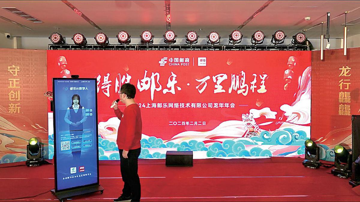 现场展示与邮乐AI数字人交流互动。(本文图片由邮乐公司提供)