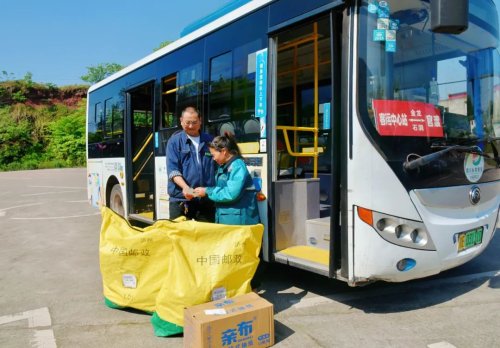 不一会儿,蒋雪梅将整理好的四大袋邮件送到一旁的公交车站台,与充当临时“快递员”的驾驶员肖天春紧密协作,完成邮件交接。来自全国各地的邮件,将准时坐上由金龙镇开往官渡社区的公交车,向广袤乡村驶去。