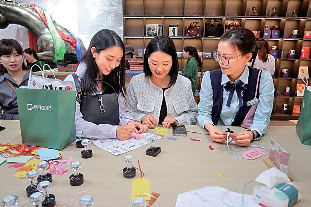 盖戳打卡是情歌邮局里必体验的环节。□登真达珍 摄