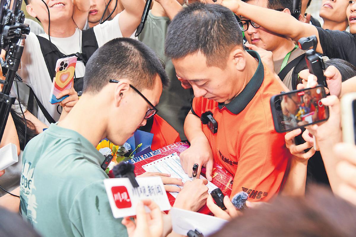7月8日9时30分,四川省首份高考录取通知书从四川大学录取现场发出,投递至考生指定地址(上图)。当天18时45分,北京市第一封普招高考录取通知书在北京语言大学现场打印,北京邮政特别选派了全国五一劳动奖章获得者史春华承担投递任务(下图)。四川、北京首封高考录取通知书的安全送达,标志着中国邮政2024年高考录取通知书寄递工作正式拉开帷幕。