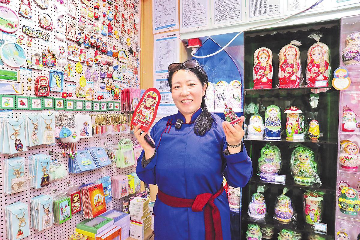 “国门边居然还有邮局,太神奇了!快帮我拍张照!”在国门景区的入口处,占地200多平方米的满洲里国门主题邮局吸引了不少游客。跟随游客的脚步进入主题邮局,分布有序的各个功能区都挤满了人。“这是我们的爆款——国门冰箱贴,珐琅工艺,火车还可以自由活动……”记者看到,没等邮局工作人员介绍完,几位游客已经快速买下好几样文创产品。国门主题邮局负责人项欣介绍说:“我们主题邮局里有邮品、文创产品、特色食品等500多种,以国门为主题的文创产品和鄂温克族手工艺品都非常受游客喜爱。”