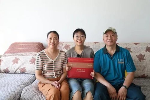 “女儿,恭喜你!你的吉林大学录取通知书到了,请签收!”在验证过准考证和身份证件后,吕启光将吉林大学的高考录取通知书郑重地递交到自己的女儿吕喆手中。