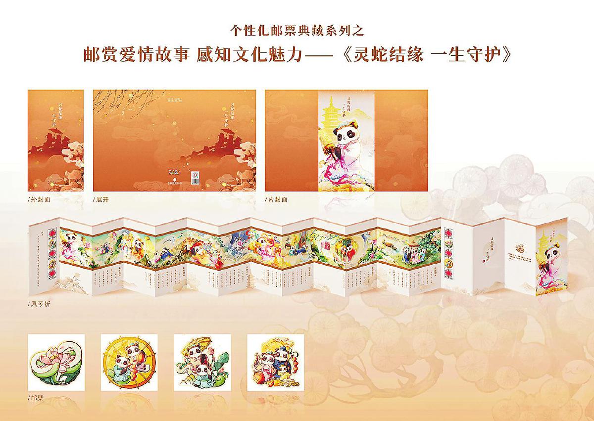 近日,国产动画电影《白蛇·浮生》热映,唤起了人们关于白蛇神话故事的美好回忆。围绕《白蛇传》这一国人家喻户晓的经典爱情故事,中国集邮继续携手原创IP形象“汉服熊猫”开发邮品,创新推出“白蛇传”主题个性化邮票典藏风琴折——《灵蛇结缘 一生守护》,以邮为媒,传承经典。