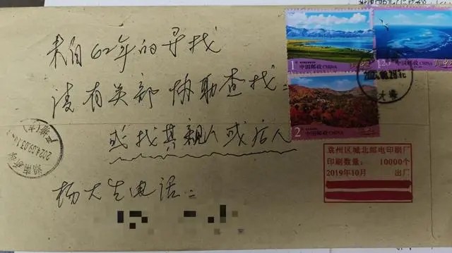 信封背面留的字是:来自62年的寻找,请有关部门协助查找,或找其亲人、后人。