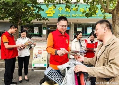 10月9日,在乐陵市邮政分公司门前,工作人员在开展寄递安全宣传活动。