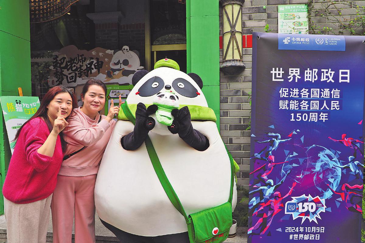 10月9日,第55届世界邮政日暨熊猫邮局开办11周年庆祝活动在四川省成都市熊猫邮局暑袜街旗舰店举行。成都市邮政分公司在此举办熊猫邮局X大丸偶“熊猫遇上世界名画”艺术快闪展,充分展现熊猫邮局独特的品牌魅力,同时进一步提升邮政文化和熊猫文化的国际影响力。□王妆砚 杨凯洋 摄