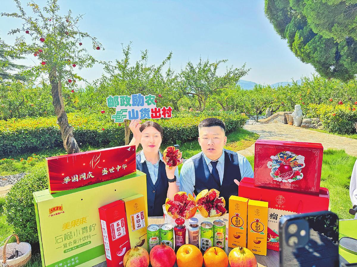枣庄邮政在石榴园进行助农直播。□程菲 摄