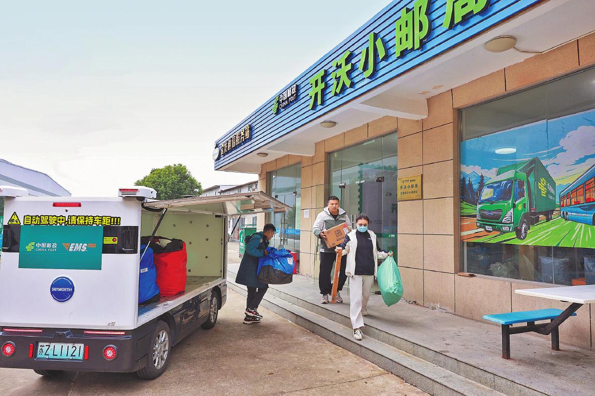 该无人车是南京市邮政分公司首台嵌入业务环节的无人车,它配合溧水邮政在园区设立的无人小邮局,形成了全自助、24小时营业的双无人模式,提供全天候、不间断的自助取件、寄件及退件服务,显著提升了服务效率,日均运送邮件量超过600件。